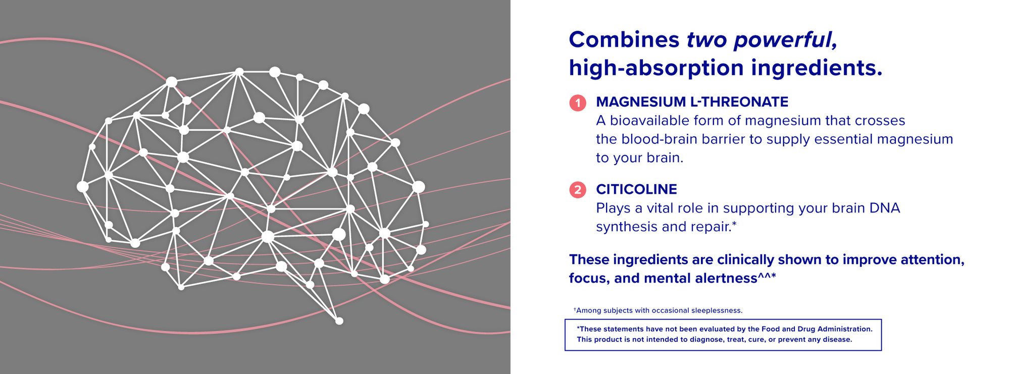 Nylius Brain Health is the first and only dual-action tablet to combine two powerful, clinically tested, high-absorption ingredients: Magnesium L-Threonate and Citicoline.